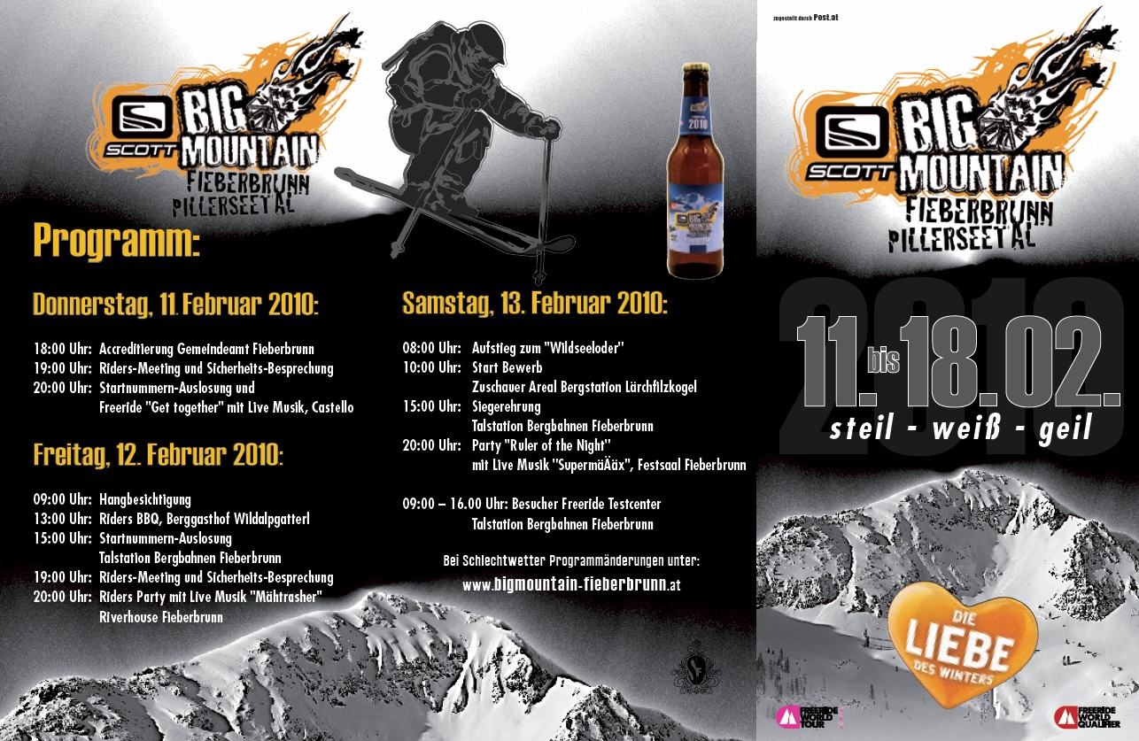 Dne 6.2.2010 se měla konat kvalifikace na velice známý FWT závod Scott Big Mountain ve Fieberbrunnu. Po loňském umístění (15) jsem doufal, že i letos se tohoto závodu zúčastním, a proto jsem nezahálel a trénoval, jak nejvíce to šlo. Vše šlo hladce, až do dne před závodem, kdy bylo oznámeno zrušení kvalifikace ( z důvodu špatné předpovědi počasí). Tato informace by nebyla až tak tragická, pokud by byla kvalifikace odložena na jiný den. To se však nestalo, neboť kvalifikace byla zrušena celkově. Po přečtení této zprávy z emailu jsem byl nemile překvapen a hodně zklamán, protože jsem přijel už den předem, abych se mohl rozjezdit a hodit se tak do formy.